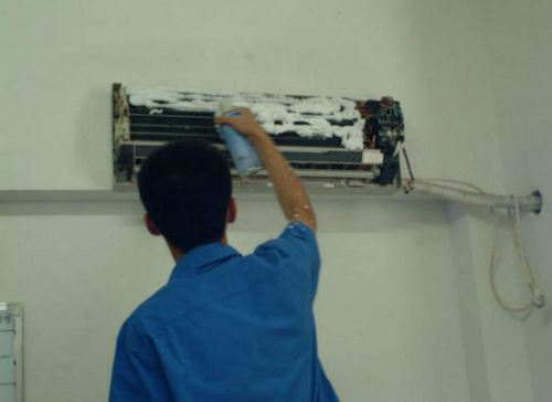 | 黑河空调维修师傅给黑河用户上门维修清洗空调。 |
